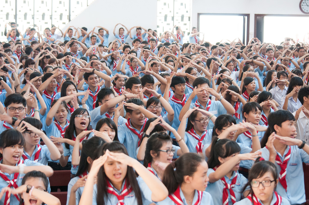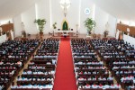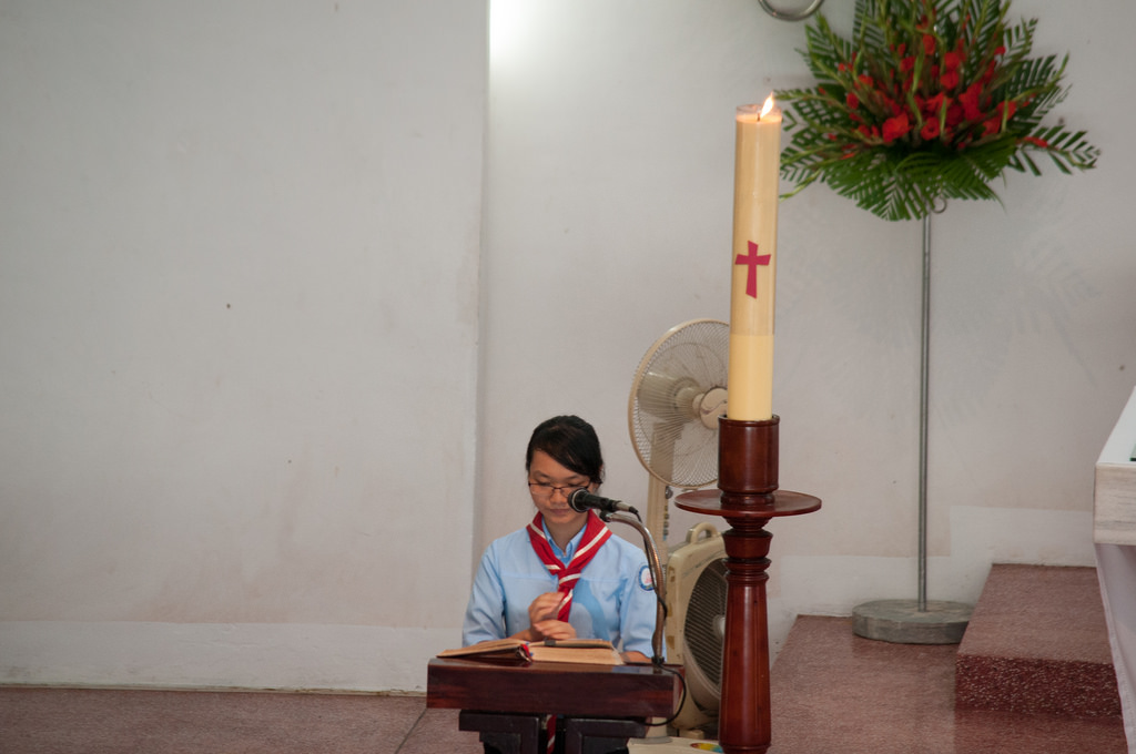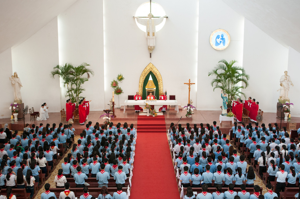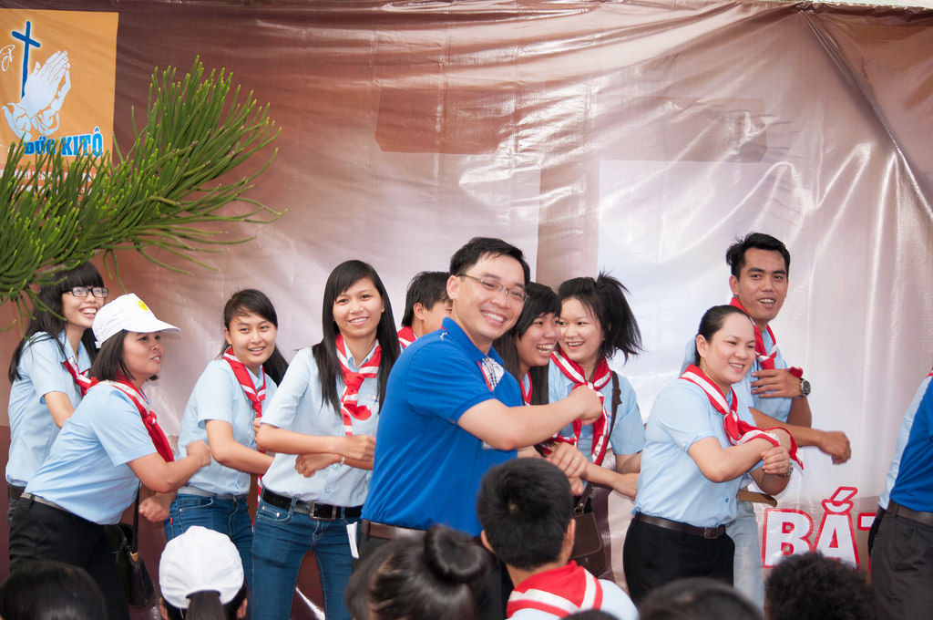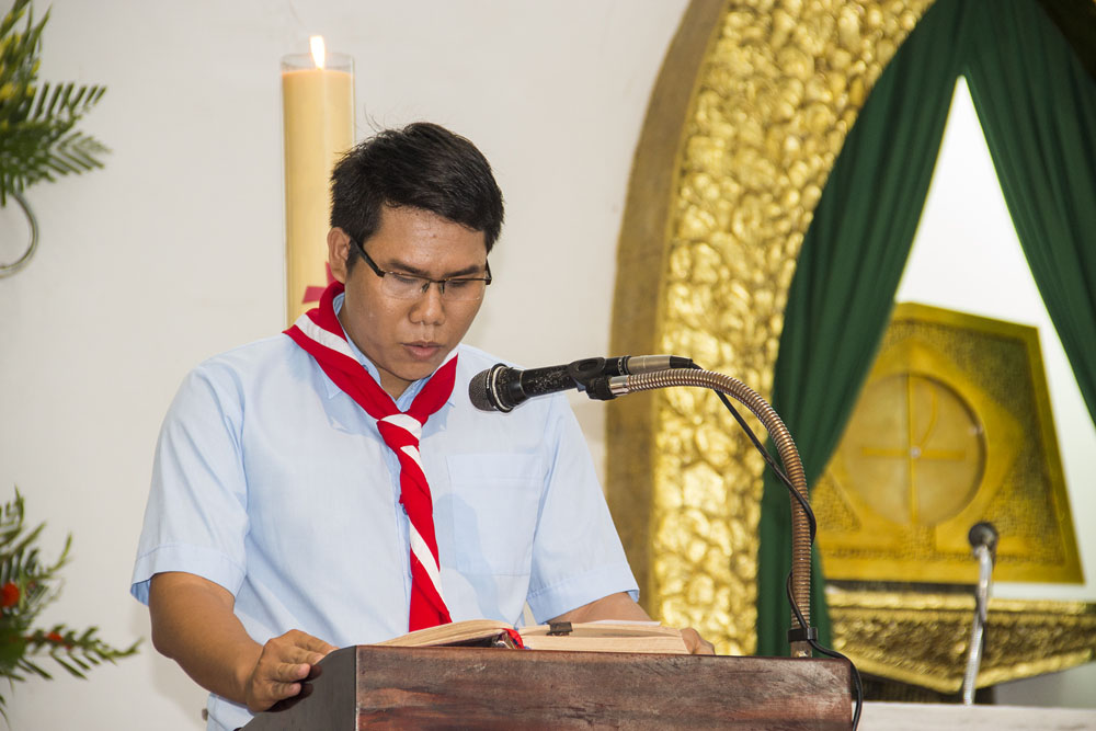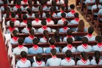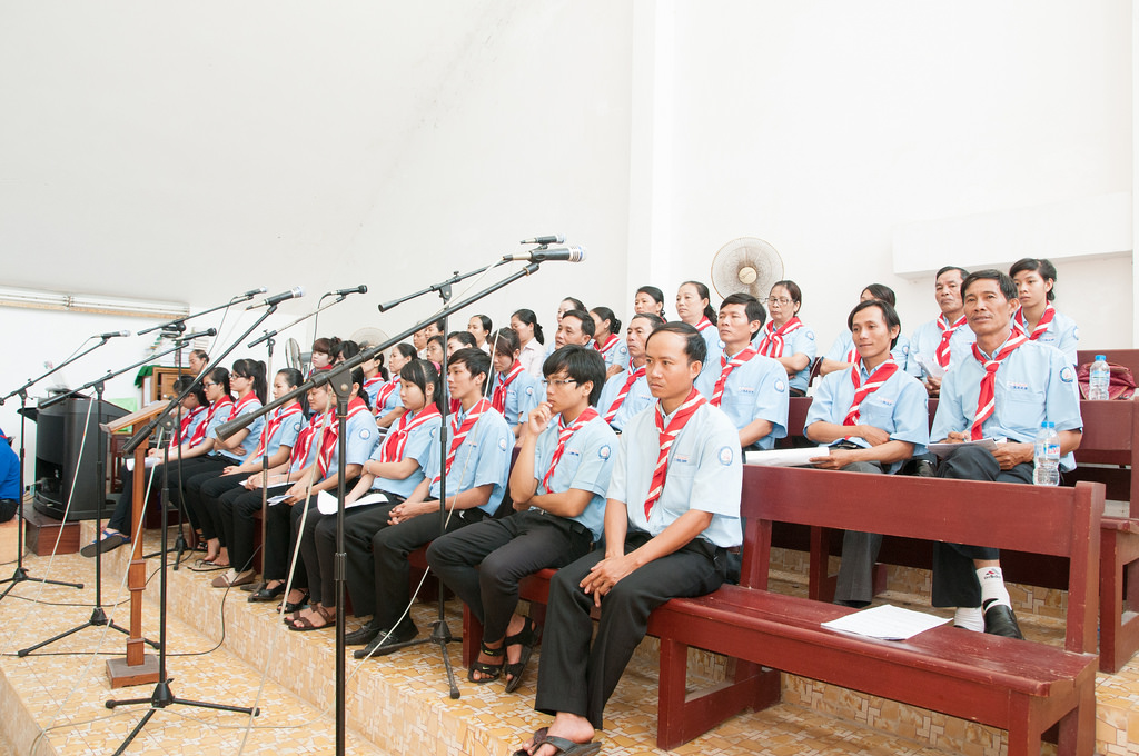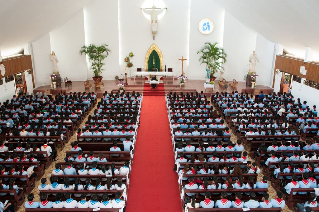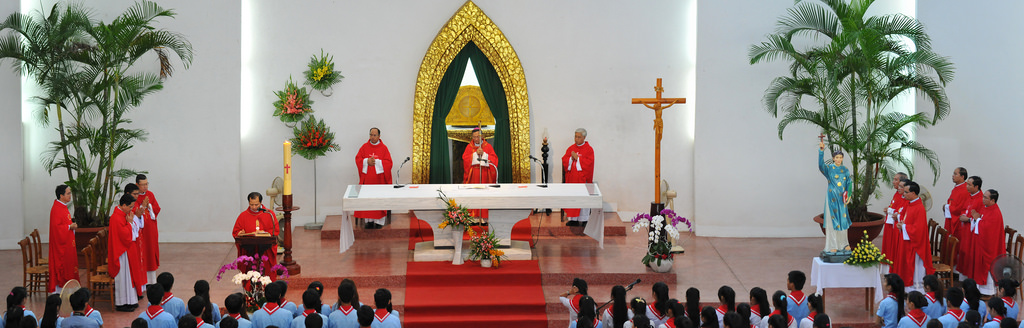 Sáng hôm nay, 26/7/2014, Đền Thánh Đức Mẹ Bãi Dâu tràn ngập một màu xanh lam tươi mát, màu áo đồng phục của 2.033 Giáo Lý Viên, đại diện cho những người đang dấn thân phục vụ trong việc giảng dạy giáo lý cho các em Thiếu Nhi ở các Giáo xứ, Giáo họ trong Giáo phận.