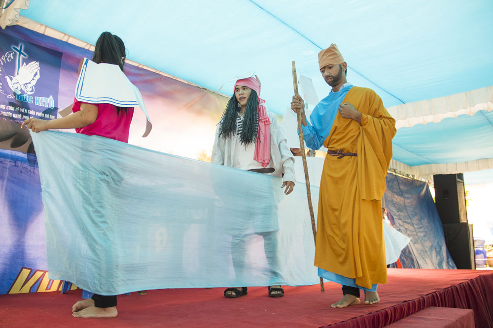 Sau khi được hâm nóng bằng các điệu vũ sinh hoạt tươi vui, các anh chị em đã được gặp gỡ Đức Giám mục Giáo phận. Trong lời huấn dụ, Ngài nhắc nhớ sứ mạng và trách nhiệm của một Giáo lý viên. Trước những khó khăn gặp phải trong việc loan báo Tin Mừng cho thế hệ trẻ hôm nay, Đức Giám mục mời gọi mọi người cố gắng hơn nữa, hy sinh hơn nữa, sống mật thiết hơn với Đức Giêsu, học theo Người,… Tin rằng đó là con đường chắc chắn làm cho những hạt giống Tin Mừng có thể triển nở và sinh hoa kết trái dồi dào. Mượn ý của Đức Thánh Cha Phanxicô, Đức cha nhắn nhủ các Giáo Lý viên đừng sợ bất cứ gì khi đi theo Đức Kitô.