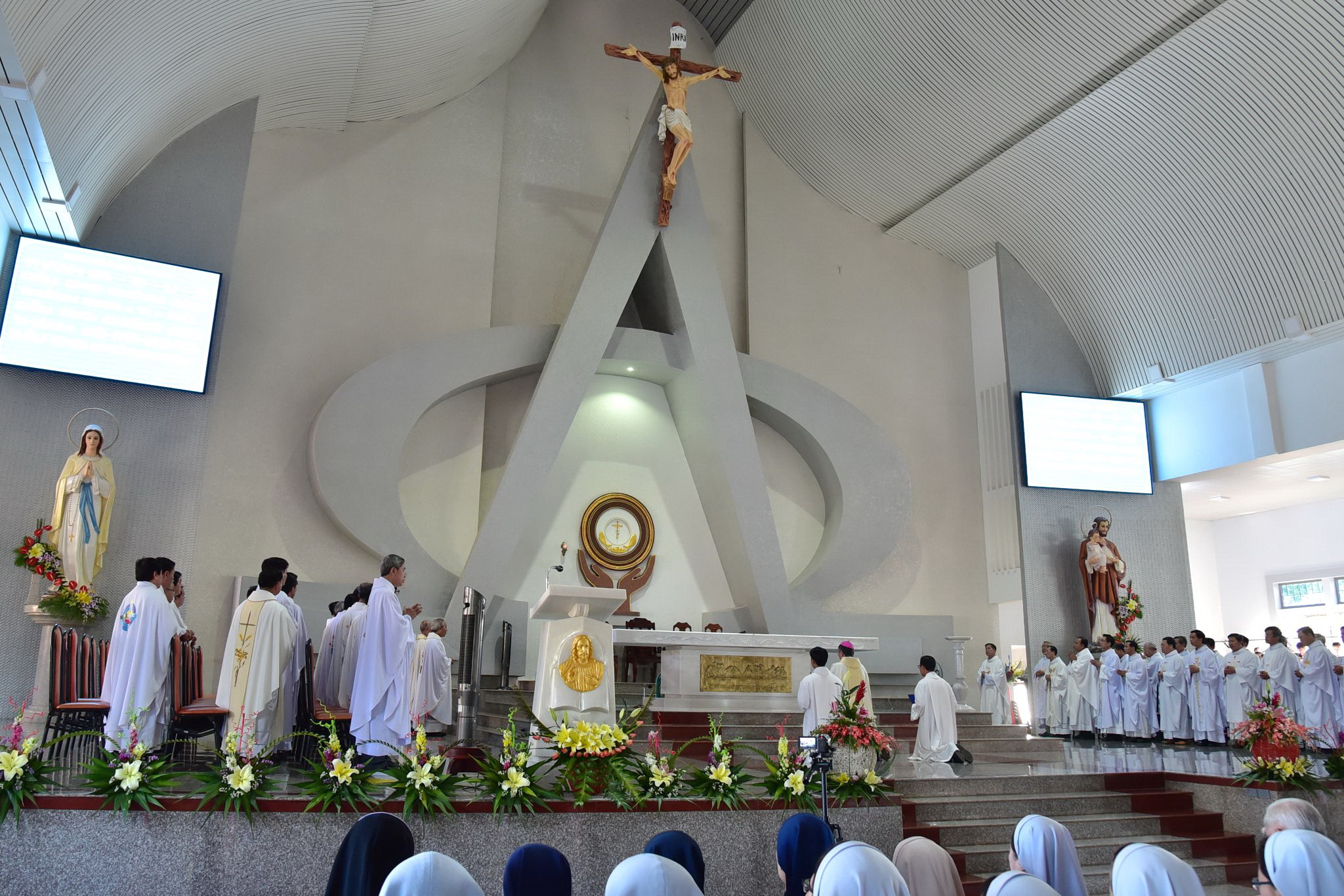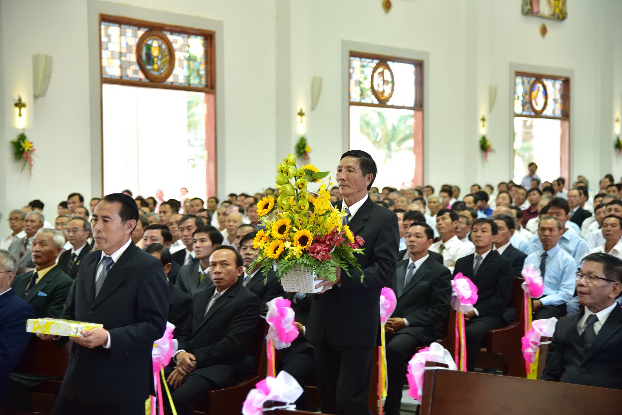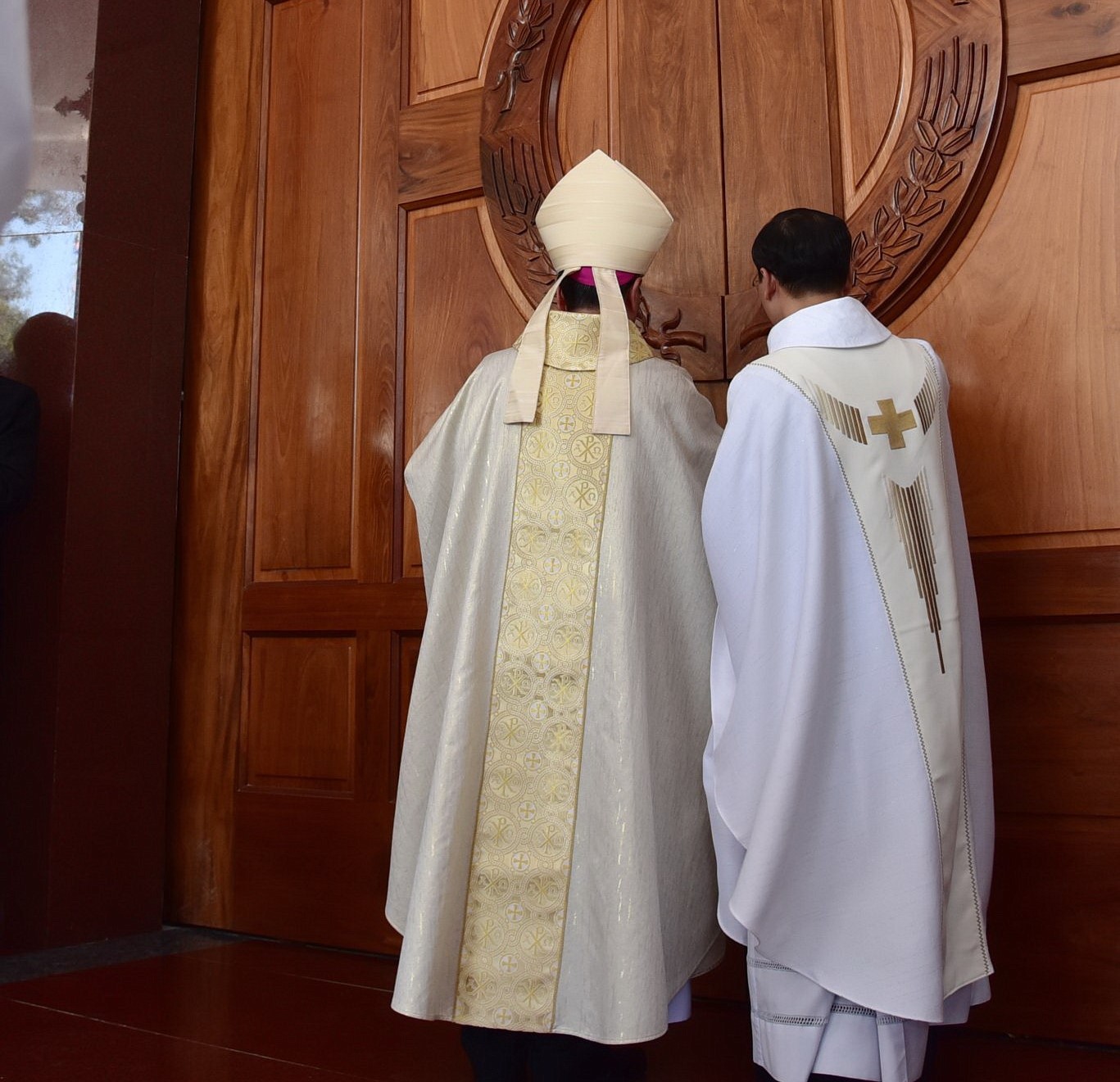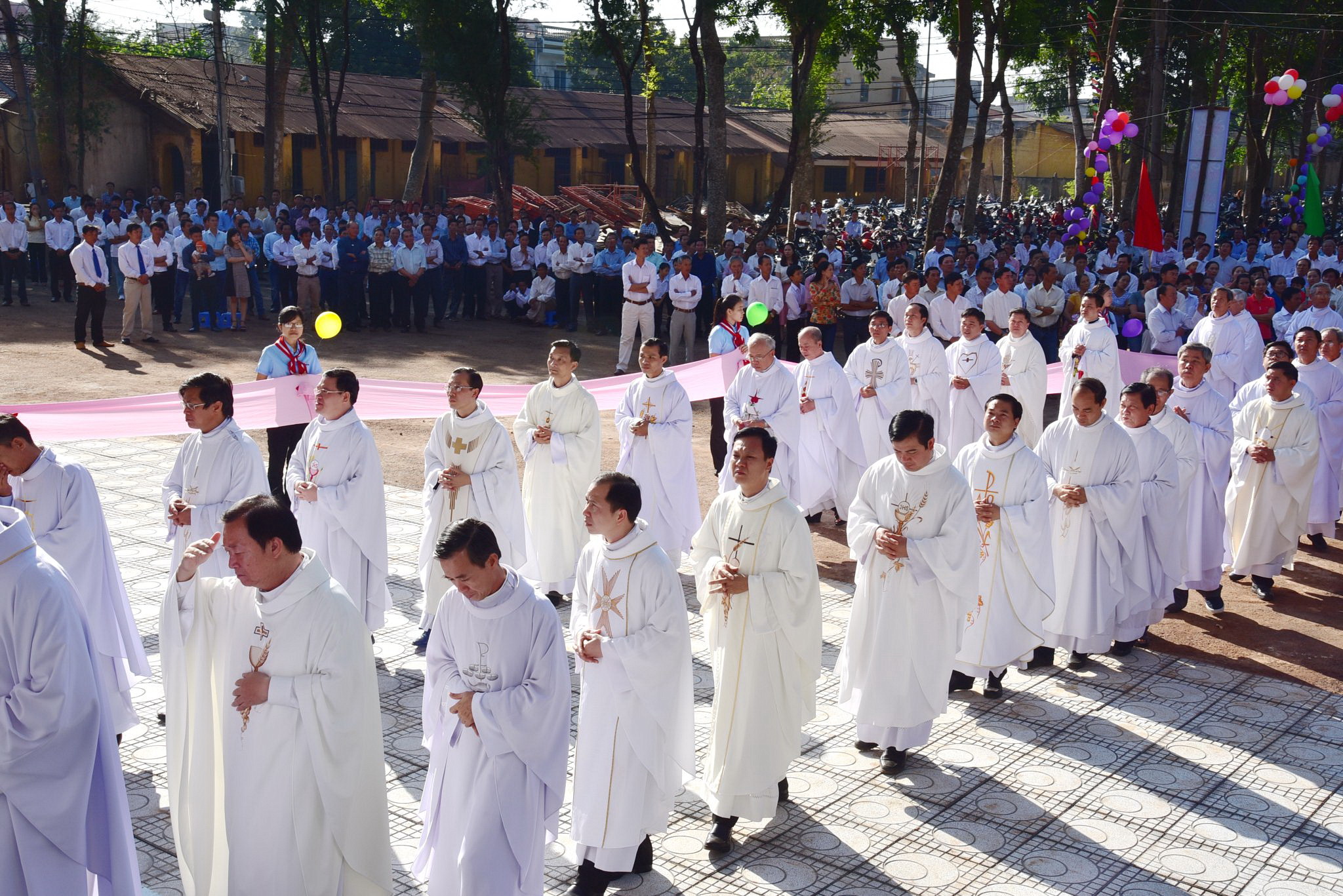 Đoàn đồng tế đã dừng lại tại tiền sảnh nhà thờ để tham dự Nghi thức Cắt băng khánh thành và mở cửa thánh đường. Sau đó, đoàn đồng tế cùng cộng đoàn tiến vào Nhà Chúa cùng dâng lời tôn vinh và tạ ơn Thiên Chúa.
