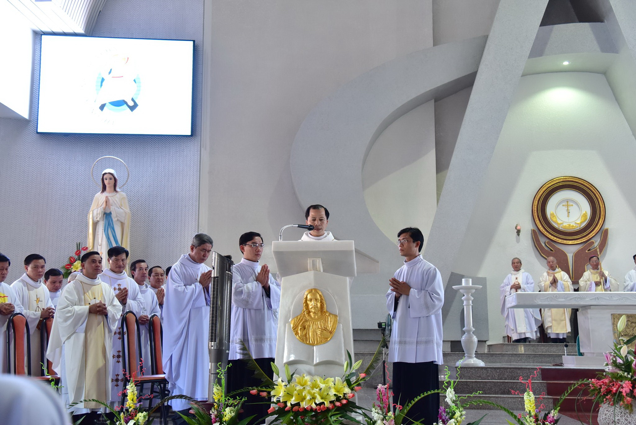 Sau lời nguyện hiệp lễ, một vị Ban Hành giáo đại diện cộng đoàn dân Chúa giáo xứ dâng lời tri ân Đức Cha, Đức Ông, quý Cha, quý Tu sĩ, quý Ân nhân, quý Khách trong và ngoài giáo phận đã quảng đại giúp đỡ để ngôi thánh đường được hoàn thành.