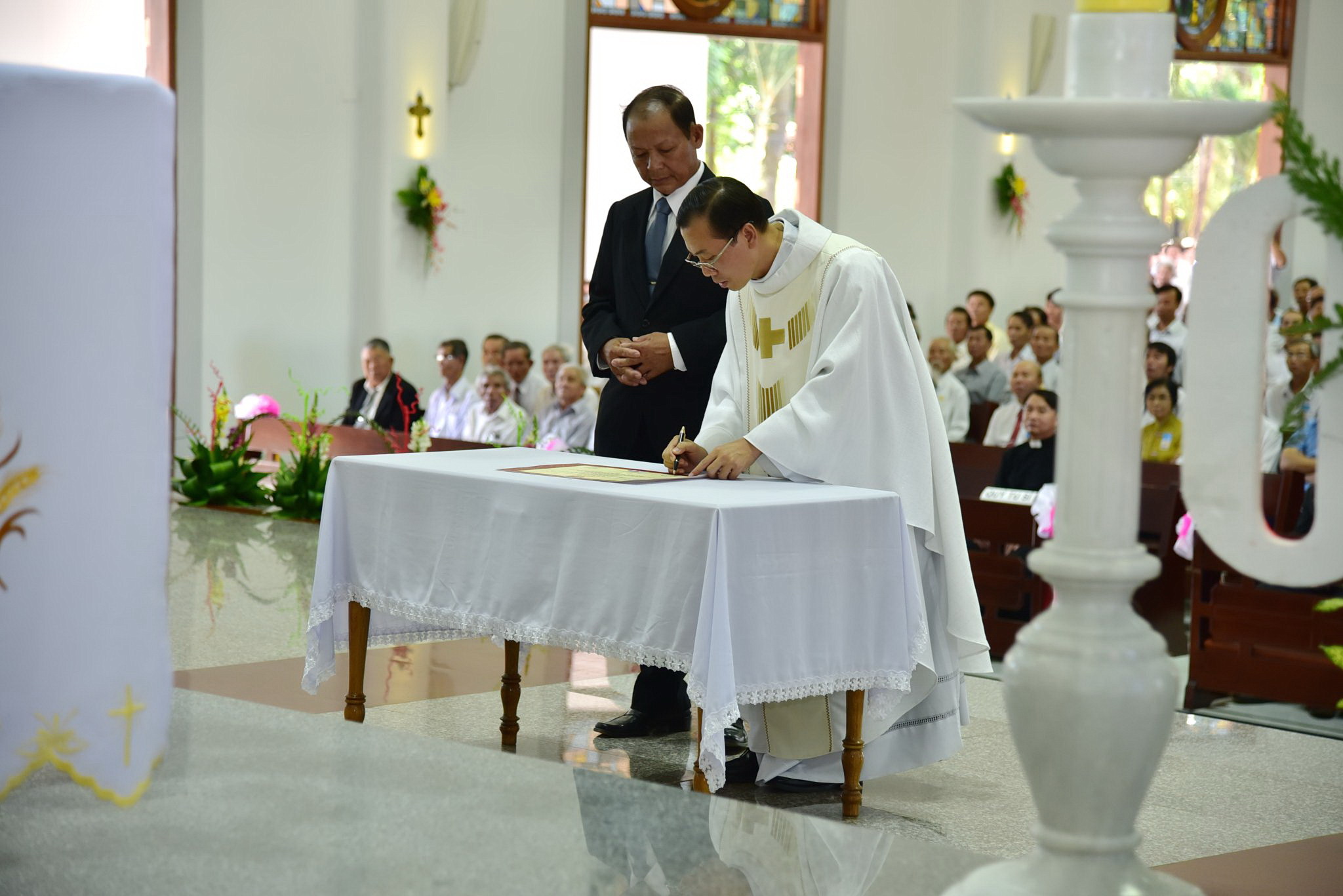 Nghi thức Cung hiến kết thúc bằng việc công bố và ký chứng thư. Chính tay Đức Giám mục Giáo phận đã trao chứng thư cho Cha Chánh xứ Giuse trước mặt cộng đoàn như một sự ủy thác sứ vụ.