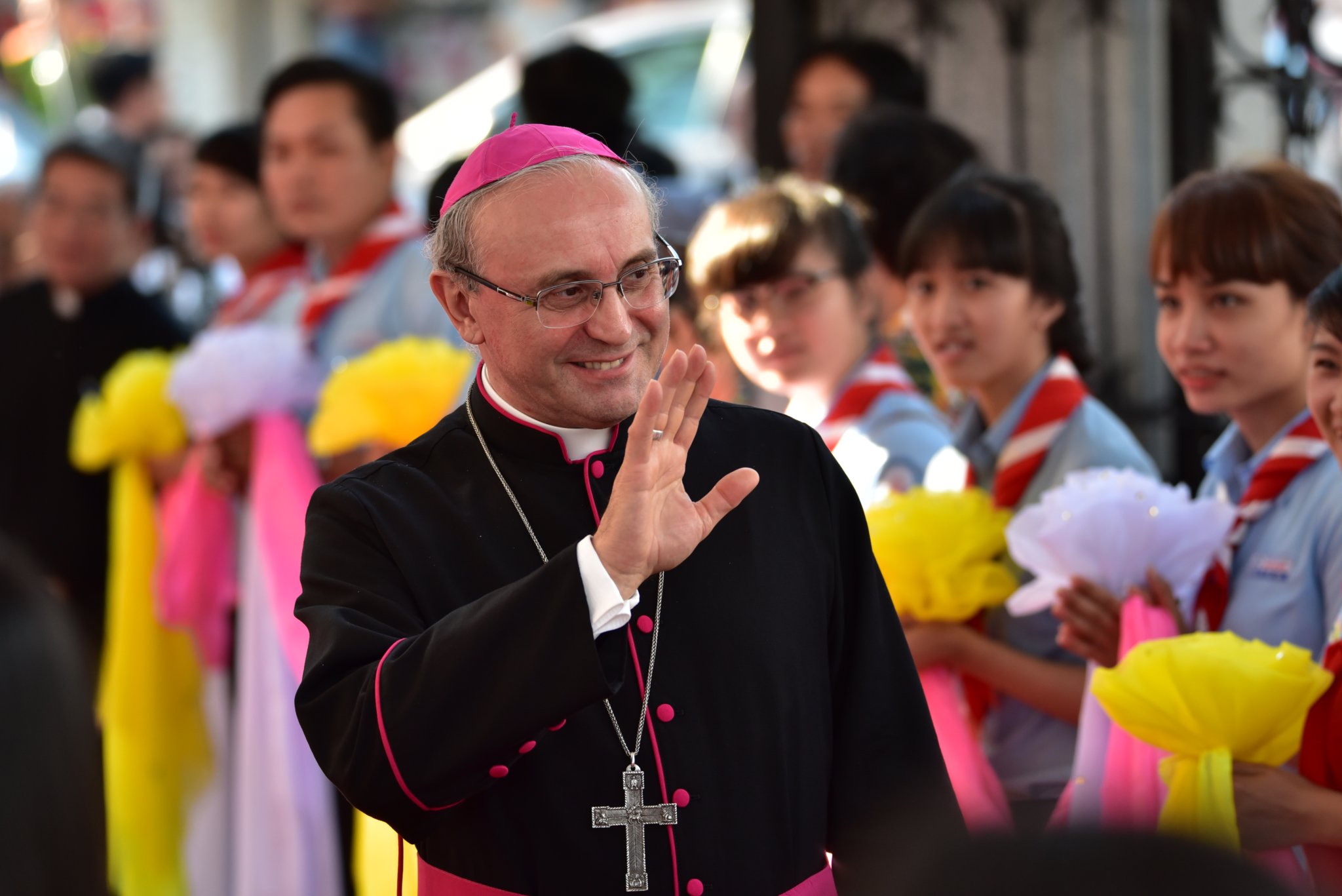 Đức Giám mục chủ phong Tôma Nguyễn Văn Trâm, Giám mục Giáo phận Bà Rịa, Đức Tổng Giám mục Leopoldo Girelli, Sứ thần Tòa Thánh, Đức Tổng Giám mục Phaolô Bùi Văn Đọc, Chủ tịch Hội đồng Giám mục Việt Nam, Đức Hồng y Phêrô Nguyễn Văn Nhơn, Tổng Giám mục Tổng Giáo phận Hà Nội, 30 Đức Giám mục các giáo phận khác thuộc Hội đồng Giám mục Việt Nam, cùng 670 linh mục trong và ngoài giáo phận, như đang yêu thương nâng bước vị Giám mục Tân cử đi vào giữa lòng Nhà thờ, tiến lên cung thánh để tận hiến cho Chúa Thánh Thần, Đấng mà phần Phụng vụ Lời Chúa trong Thánh lễ và bài thánh ca “Vâng nghe Thánh Thần” không ngớt vang lên, đặc biệt trong cử hành Nghi thức Tấn phong, nhắc nhớ về sự Hiện diện đang bao phủ cộng đoàn cũng như tác động diệu kỳ của Ngài trên vị Tân chức mà Ngài đã tuyển chọn và xức dầu trong giờ phút này. Cộng đoàn như cảm nhận mình đang sống trong cảnh vực Thần Linh và ước mong chia sẻ tâm tình “Vâng nghe Thánh Thần” của vị Tân Giám mục.
