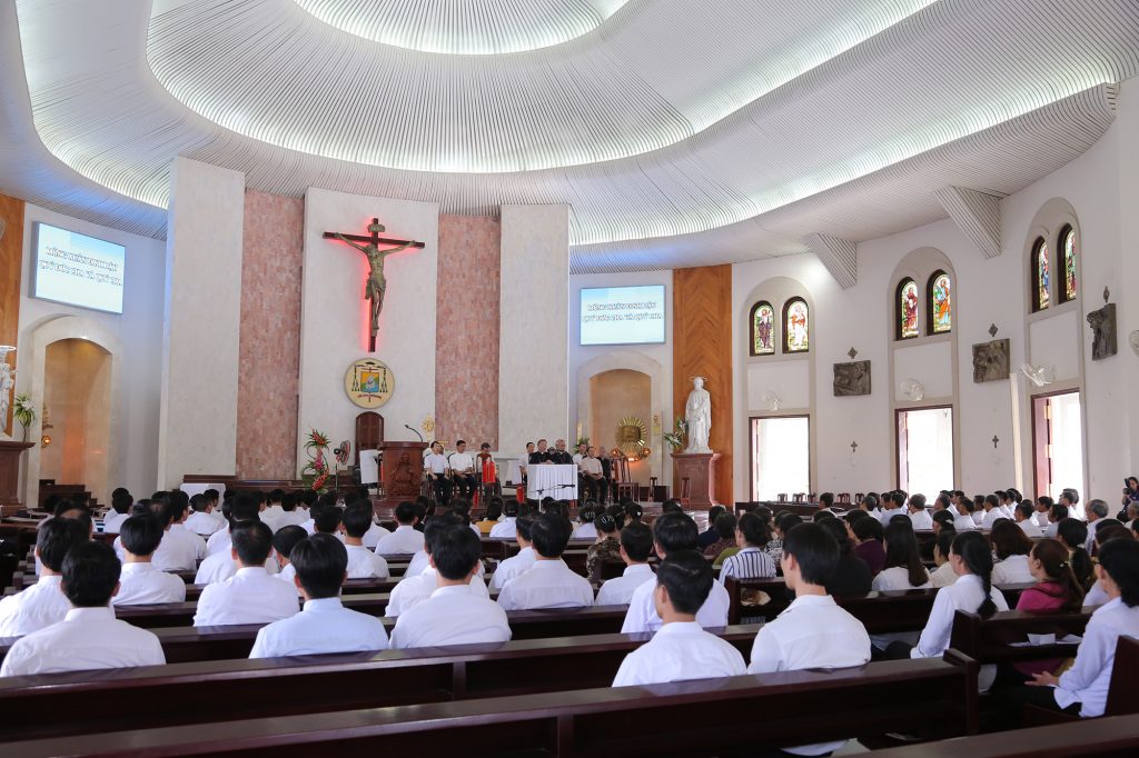 Sau đó, lúc 09g45, toàn thể quý Ông Bà cố và anh em Chủng sinh, Tu sinh và Dự tu có mặt đầy đủ trong nhà thờ để chúc tết hai Đức cha và quý Cha giáo. Một Thầy đại diện đã bày tỏ lòng biết ơn chân thành và chúc mừng năm mới hai Đức cha và quý Cha giáo: lời cầu chúc năm mới luôn an vui, mạnh khỏe, tràn đầy ơn khôn ngoan và sức mạnh của Chúa Thánh Thần.