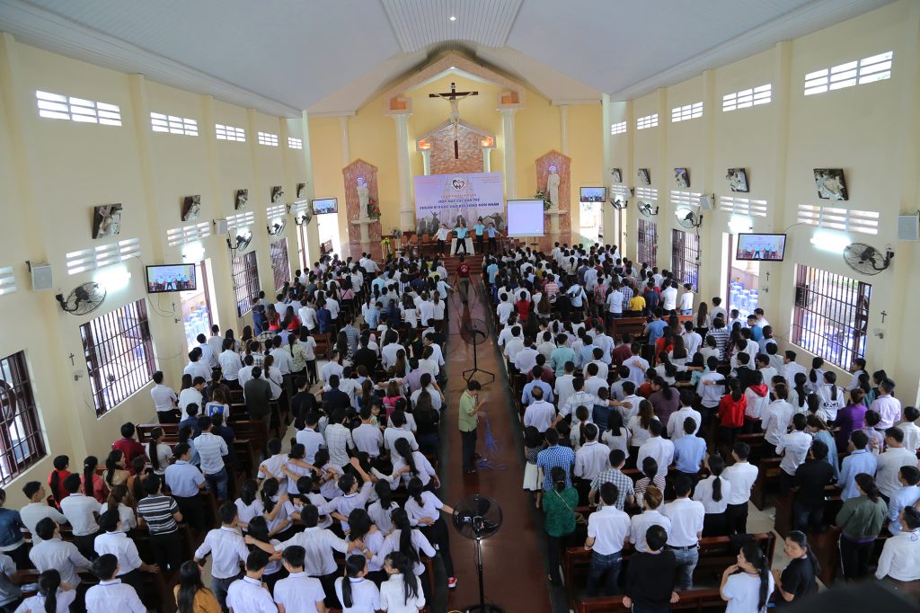 Gần 1000 các bạn trẻ đến từ các giáo xứ, giáo họ biệt lập trong giáo phận tham gia ngày họp mặt. Sau phần khai mạc đơn sơ Cha Phêrô Trần Xuân Huệ – Trưởng Ban Mục vụ Gia đình Giáo phận, cộng đoàn bước vào phần chia sẻ các đề tài.