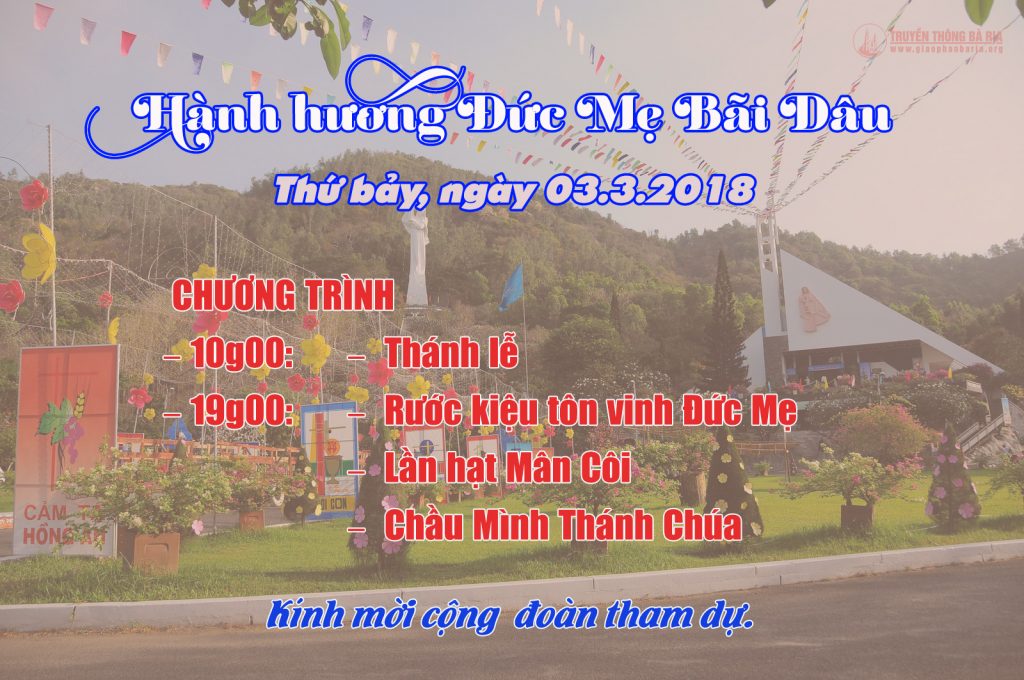 THÔNG BÁO: HÀNH HƯƠNG KÍNH ĐỨC MẸ BÃI DÂU