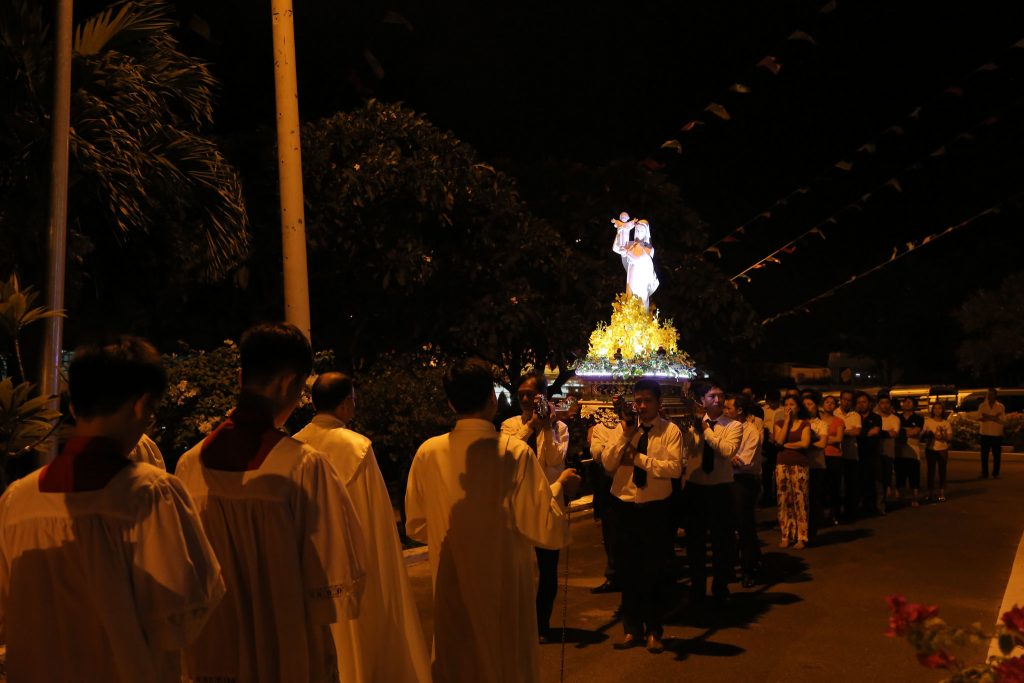 Vào lúc 19g00 cùng ngày, Cha Antôn Trần Văn Binh – Chánh xứ Tân Châu, Cha Phanxicô Xaviê Nguyễn Văn Đạo – Quản hạt Vũng Tàu, quý tu sĩ nam nữ và cộng đoàn đã tham dự cuộc rước kiệu tôn kính Mẹ Maria và dâng lên Mẹ những lời ca, những tâm tình cầu nguyện và những lời kinh qua tràng chuỗi Mân Côi. Sau cuộc rước, mọi người cùng sum họp trong Đền Thánh để suy tôn Mình Thánh Chúa.