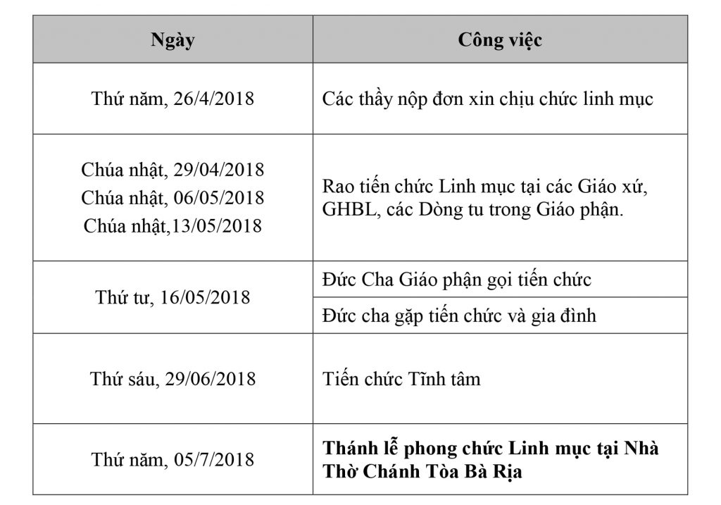 Tiến Chức Linh mục – năm 2018