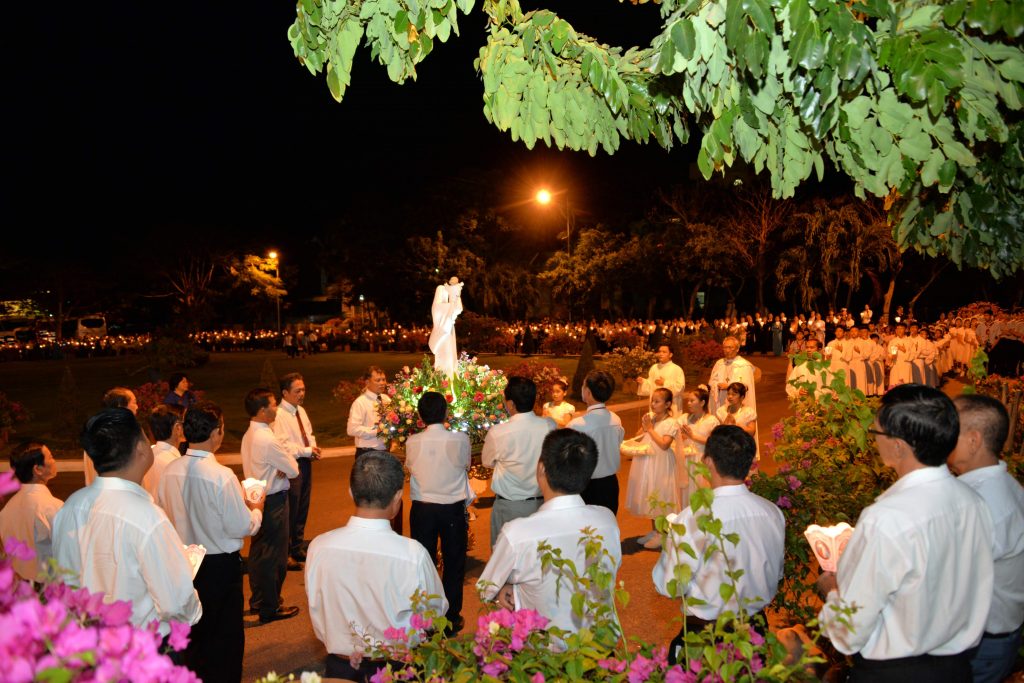 Trong tâm tình tháng Hoa, đặc biệt nhân dịp kỷ niệm 101 năm lần đầu tiên Đức Mẹ hiện ra tại Fatima (13.5.1917), vào lúc 16g50 ngày 12.5.2018, đông đảo khách hành hương đã quy tụ về bên Mẹ Maria tại Đền Thánh Đức Mẹ Bãi Dâu để cùng dâng lên Mẹ những đóa hoa tươi cũng như hoa lòng của mỗi người. Từng đóa hoa là từng tâm hồn, từng lời nguyện tiến dâng về Mẹ, xin Mẹ xoa dịu, ủi an và chở che con cái Mẹ vững bước vượt qua cuộc lữ hành trần thế hôm nay.
