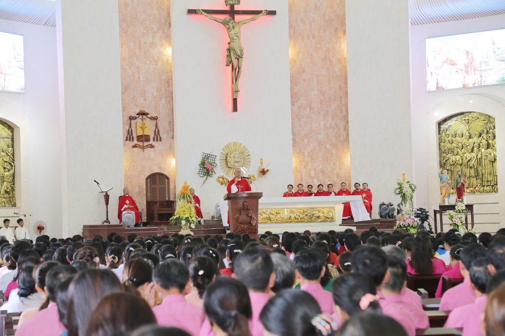 “Trong Đức Kitô, xin cho mỗi người chúng ta biết vượt qua mọi khó khăn để luôn luôn phụng sự Chúa. Xin cho mỗi người biết vượt qua những yếu đuối, biết vượt qua chính bản thân để luôn luôn quảng đại, hy sinh… ”. Đó là lời Đức Giám mục Giáo phận Emmanuel Nguyễn Hồng Sơn nhắn nhủ quý chức Ban Hành giáo các giáo xứ, giáo họ thuộc Giáo phận Bà Rịa trong Thánh lễ mừng kính Thánh Bổn mạng Phêrô và Phaolô, được cử hành vào lúc 10g00 Chúa nhật, ngày 01.07.2018, tại Nhà thờ Chánh Tòa Bà Rịa. Đây cũng là dịp quý chức Ban hành giáo hành hương năm Thánh tôn vinh các Thánh Tử Đạo Việt Nam.
