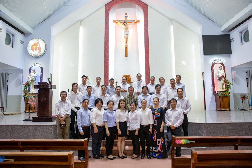 Sau thánh lễ, quý cha và anh chị em truyền thông gặp gỡ nhau trong bữa cơm huynh đệ ghi dấu ngày mừng Bổn mạng đầu tiên của Ban Truyền thông Hạt Bình Giã.
