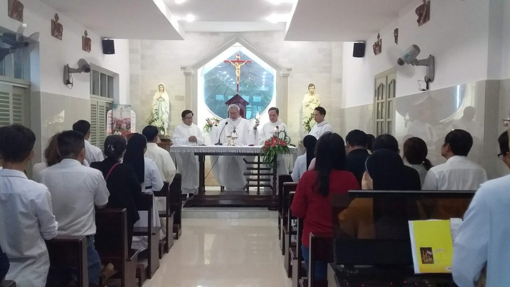 Ngoài sự hiện của cộng đoàn, thánh lễ có sự hiệp thông của Cha Giuse Nguyễn Ngọc Thảo – Phụ trách Núi Chúa, Cha Gioan B. Nguyễn Văn Bộ – Chánh xứ Vũng Tàu cùng quý cha phó.