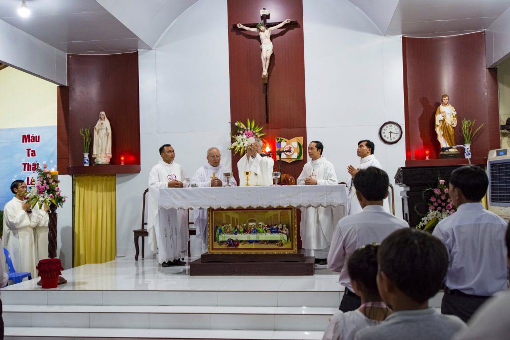 Hòa cùng với Giáo hội Hoàn vũ bước vào Tam Nhật Vượt Qua của Chúa Giêsu, vào lúc 17g30 ngày 18.4.2019, Đức cha Emmanuel Nguyễn Hồng Sơn- Giám mục Giáo phận Bà Rịa đã đến Giáo họ Hòa Vinh, một cộng đoàn đức tin thuộc vùng ven của Giáo phận, hiện trực thuộc Giáo họ Biệt lập Phú Vinh – Hạt Xuyên Mộc, để cử hành Thánh lễ Tiệc ly khai mạc Tam Nhật Thánh.