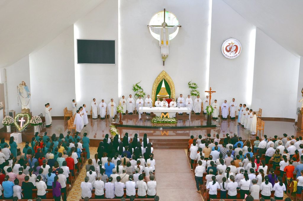 Đúng 10g00, thánh lễ tôn kính Mẹ Maria do Đức cha Emamnuel Nguyễn Hồng Sơn– Giám mục Giáo phận Bà Rịa chủ sự đã diễn ra trong bầu khí trang nghiêm sốt sắng.