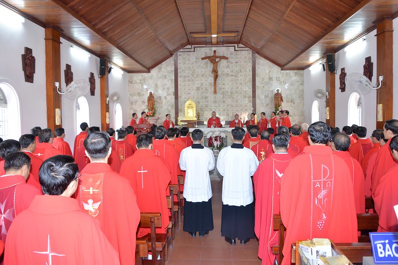 Hôm nay, linh mục đoàn giáo phận mừng các cha mới lãnh nhận thánh chức linh mục trong một khung cảnh rất đặc biệt: vừa là ngày các vị Tử đạo Bà Rịa trở thành hiến lễ cho Chúa cách trọn vẹn, vừa trong bầu khí chung quanh ngôi mộ của các ngài như một chứng tích của lòng yêu mến: không có tình yêu nào lớn hơn tình yêu của người thí mạng vì bạn hữu. Trong khung cảnh đặc biệt đó, chúng ta cầu nguyện cách riêng cho các cha mới và cho từng anh em linh mục chúng ta cũng luôn được thúc đẩy bởi một tình yêu lớn nhất, luôn làm cho cuộc đời linh mục của mình có được giá trị của một hy lễ thực sự, không chỉ là dâng thánh lễ nhưng là chính mình làm hy lễ. Chúng ta xin cho ngày cầu nguyện đặc biệt hôm nay, Chúa tuôn đổ xuống trên chúng ta ơn phúc qua sự biến đổi của các vị tử đạo của giáo phận chúng ta…
