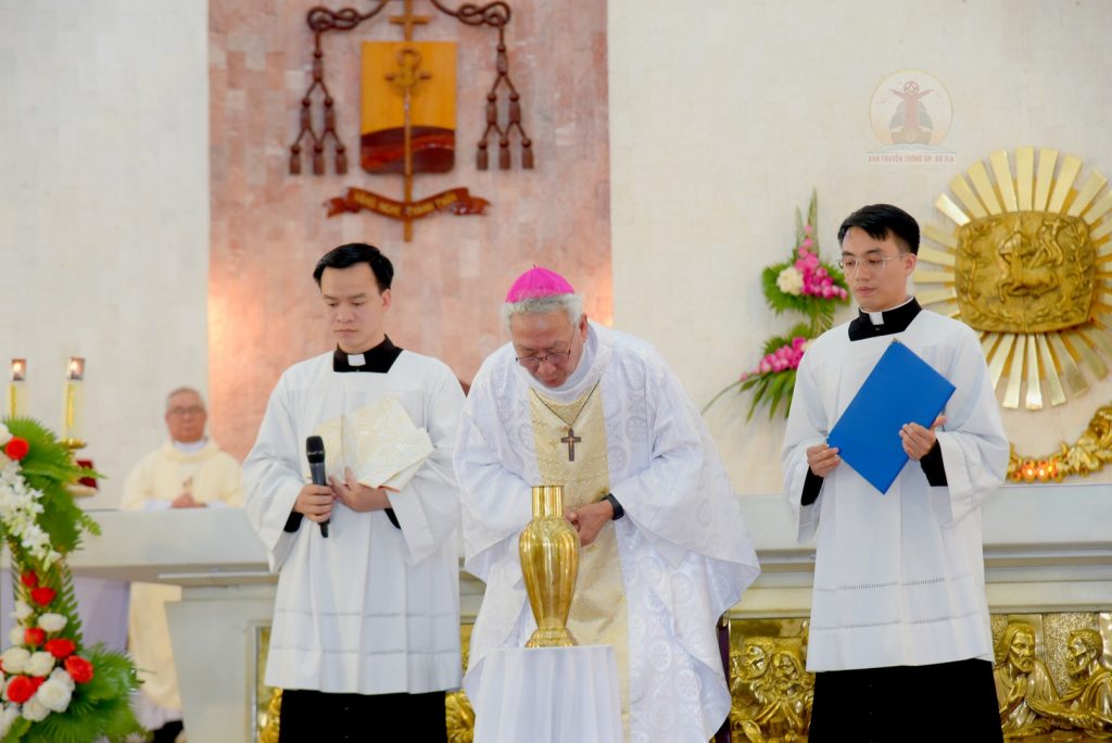 Thánh lễ Truyền Dầu tại Giáo phận Bà Rịa khép lại bằng phép lành với Ơn Toàn Xá từ Đức cha chủ tế. Sau đó, các loại Dầu Thánh được rước vào phòng thánh để phân phát cho các giáo xứ.