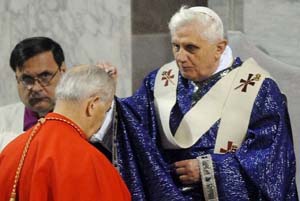 ROME, ITALY – FEBRUARY 21: Pope Benedict XVI celebrates Ash Wednesday at the Basilica of St Sabina, on February 21, 2007, in Rome, Italy. (Photo by Mimmo Chianura /Vatican Pool/Getty Images) *** Local Caption *** Benedict XVI