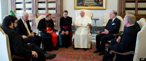 In this photo provided by the Vatican newspaper L’Osservatore Romano, Pope Francis receives a delegation of members of the World Jewish Congress, including its President Ronald S.Lauder, second from right sitting next to the pontiff, at the Vatican, Monday, Sept. 2, 2013. Cardinal third from left is Swiss Cardinal Kurt Koch, President of the Pontificial Council for Promoting Christian Unity. (AP Photo/L’Osservatore Romano, ho)