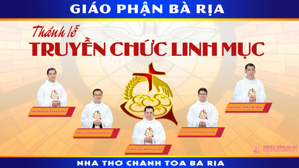 Vào lúc 08 giờ 30 Thứ Hai ngày 04.01.2021, tại Nhà thờ Chánh Tòa Bà Rịa, Đức cha Emmanuel Nguyễn Hồng Sơn sẽ truyền chức linh mục cho các Thầy Phó tế: